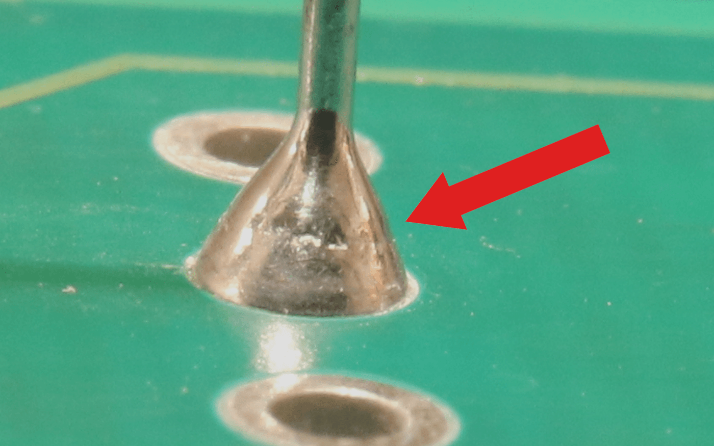 There is a likelihood of mistaking hole formation due to thermal influence with the inclusion of foreign substances. In this case, it is useful to note that not only the solder but also other substances in the fluid state expand in the direction of the greater heat. Foreign substances are displaced or flushed out by adequate handling of the heat.