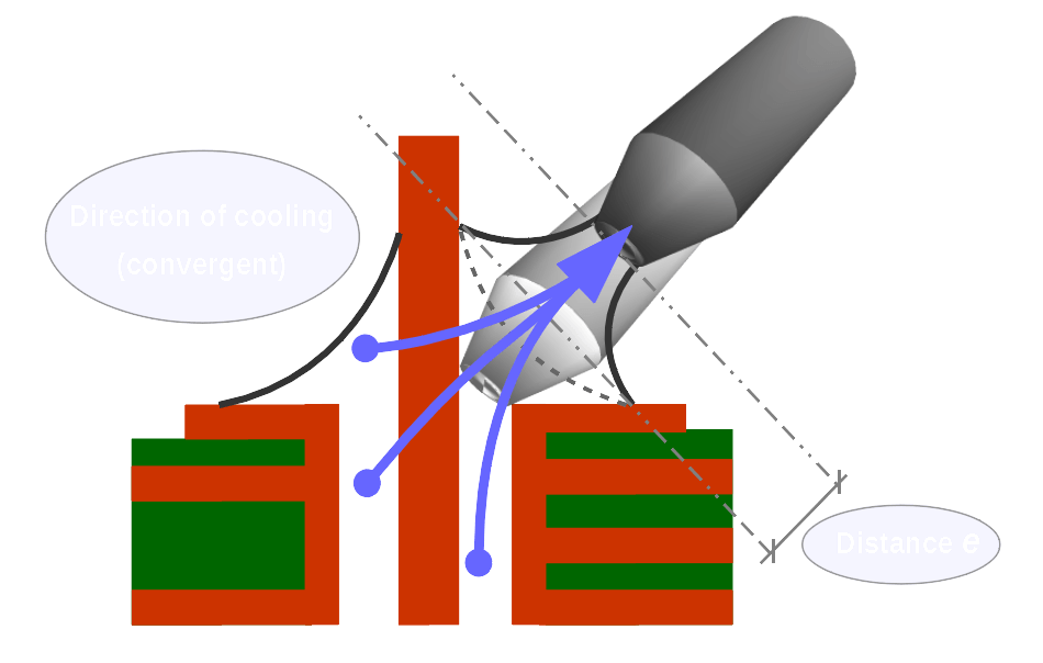 Convergence does not occur exclusively when cooling is equally distributed in all directions, but also when it occurs in a single or dominant direction. Just as the cooling is ametric and divergent when the soldering tip is removed, the cooling should now be driven in a specific direction by appropriate handling of the soldering tip.